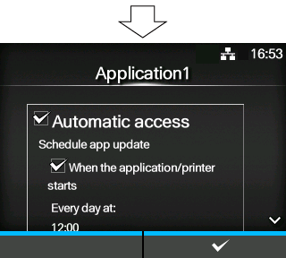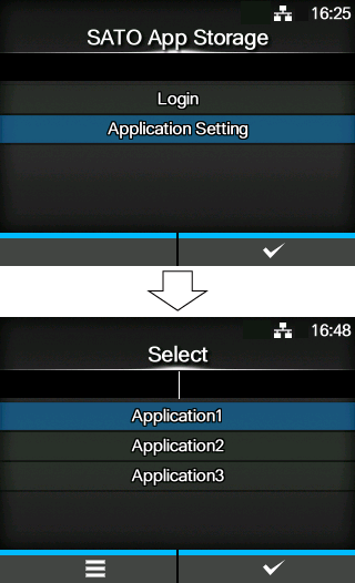 • After installing applications via SATO App Storage, information for each application can be checked by pressing [Application Setting] on the screen in step 5. Select an application from the list and press thebutton. You can check the setting status of the automatic application update and the time product access the SATO App Storage.