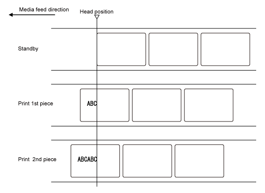 TOP > Instellen van de printer > Verwerking van afdruktaken > Bedieningswijzen met uitgeschakelde mediasensor > Mediasensor uitgeschakeld Mediasensor uitgeschakeld Wanneer de mediasensor is uitgeschakeld, stopt het medium bij de opgegeven eindpositie van de afdrukregel. Terug naar top