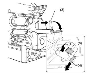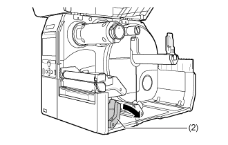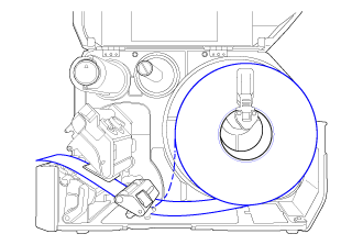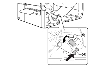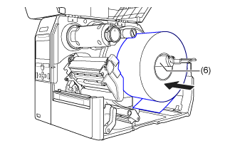 TOP > Loading Media and Ribbon > Loading Media > Loading the Media > Loading the Media Roll Loading the Media Roll View the video here (it has no audio). • For CL4NX Plus • For CL6NX Plus • The routing path of the media is shown in the below picture. Face-in media Face-out media View the video below for the procedure.CL4NX Plus CL6NX Plus 1. Open the top cover (1). • Open the top cover fully to prevent accidental drop of the cover.2. Push the head lock lever (2) towards the rear. 3. Pull the media holder guide (3) and media guide (4) away from the product. Turn the knob (5) counterclockwise to release the media guide.4. Load the media in the media holder (6). Make sure that the media roll is all the way in towards the inside of the product.5. Push the media holder guide (3) lightly against the media roll. 6. Pass the media below the media damper (7) and the media sensor guide (8) while pushing the media to inside of the product. Make sure that the end of the media extends out the front of the product.7. Press the print head down until the head lock lever is locked. 8. Press the media guide (4) lightly against the end of the media, and turn the knob (5) to lock the media guide. 9. Close the top cover. • When closing the top cover, be careful not to pinch your fingers.10. Press the button (FEED) in Offline mode to feed the media. 11. Press the button (ONLINE) to change to Online mode. • You need to load the ribbon when printing using thermal transfer. Back to top