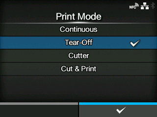 • If the optional cutter unit is installed, [Continuous], [Tear-Off], [Cutter], and [Cut & Print] are available.