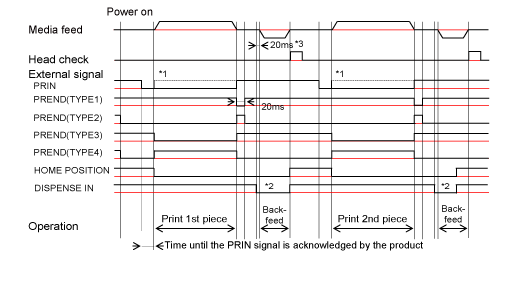 • If [Interface] > [External I/O] > [Print Start Signal] > [Feed] is enabled, PRIN (Print Start) signal will operate as the FEED signal.*3 If you have selected [Enabled] for [Printing] > [Advanced] > [Printing Operations] > [Throughput Mode], then it is 7.5 ms.