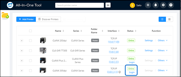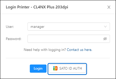 • When signing in with an SATO ID AUTH account, click [SATO ID AUTH] to log in to the printer. The option is grayed out if you are not using the SATO ID AUTH account.