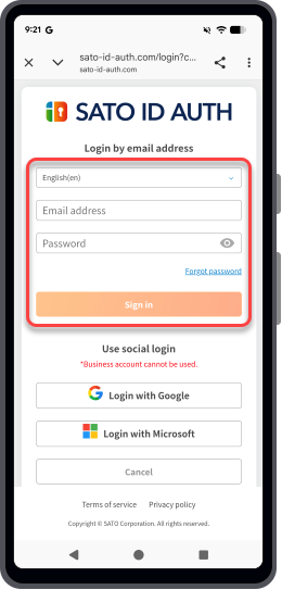 TOP > Getting Started > Logging in to SATO ID AUTH